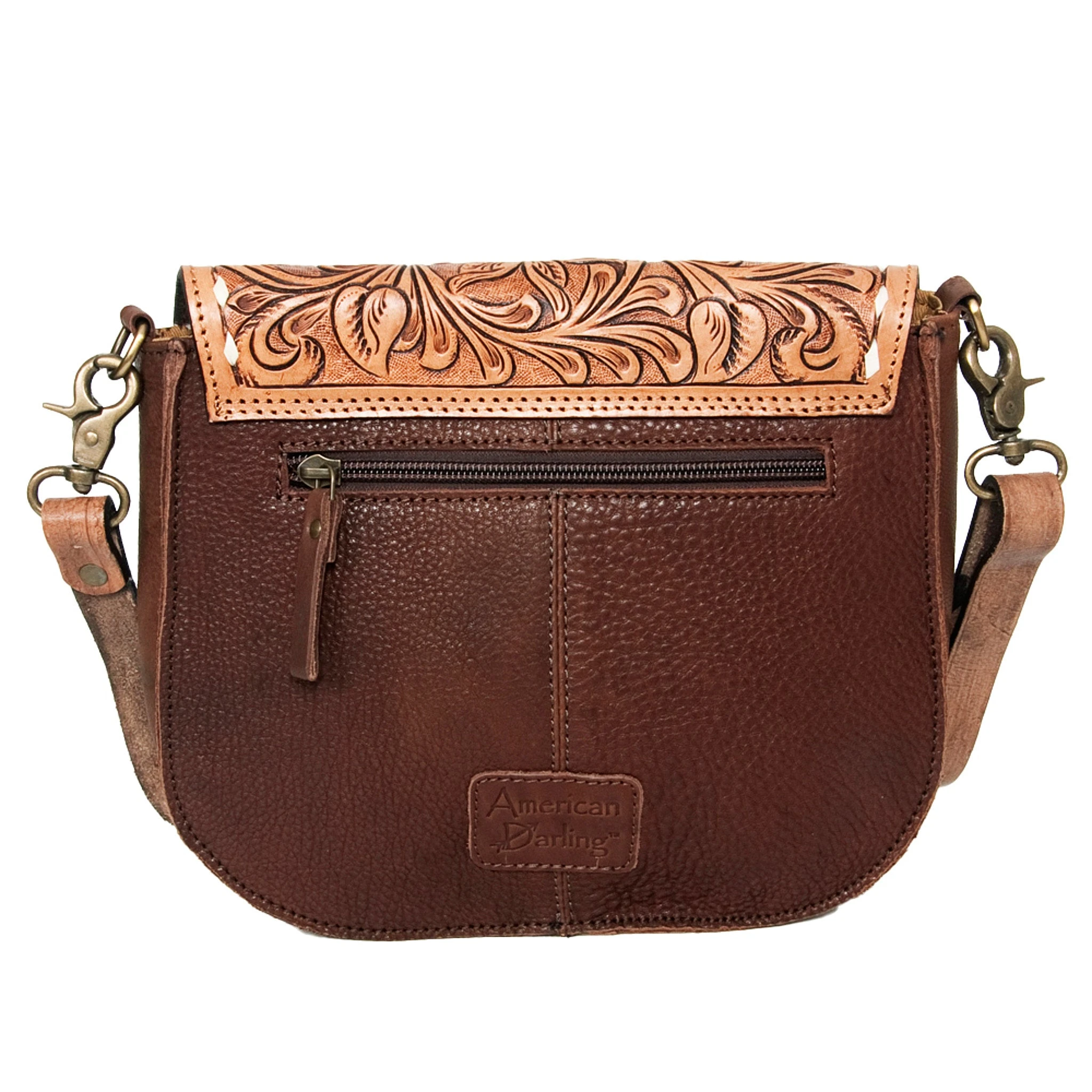 American Darling bags are handmade made for forever fashion. Comes with shoulder straps and is made of real leather. This bag has a real cowhide front making each bag unique.