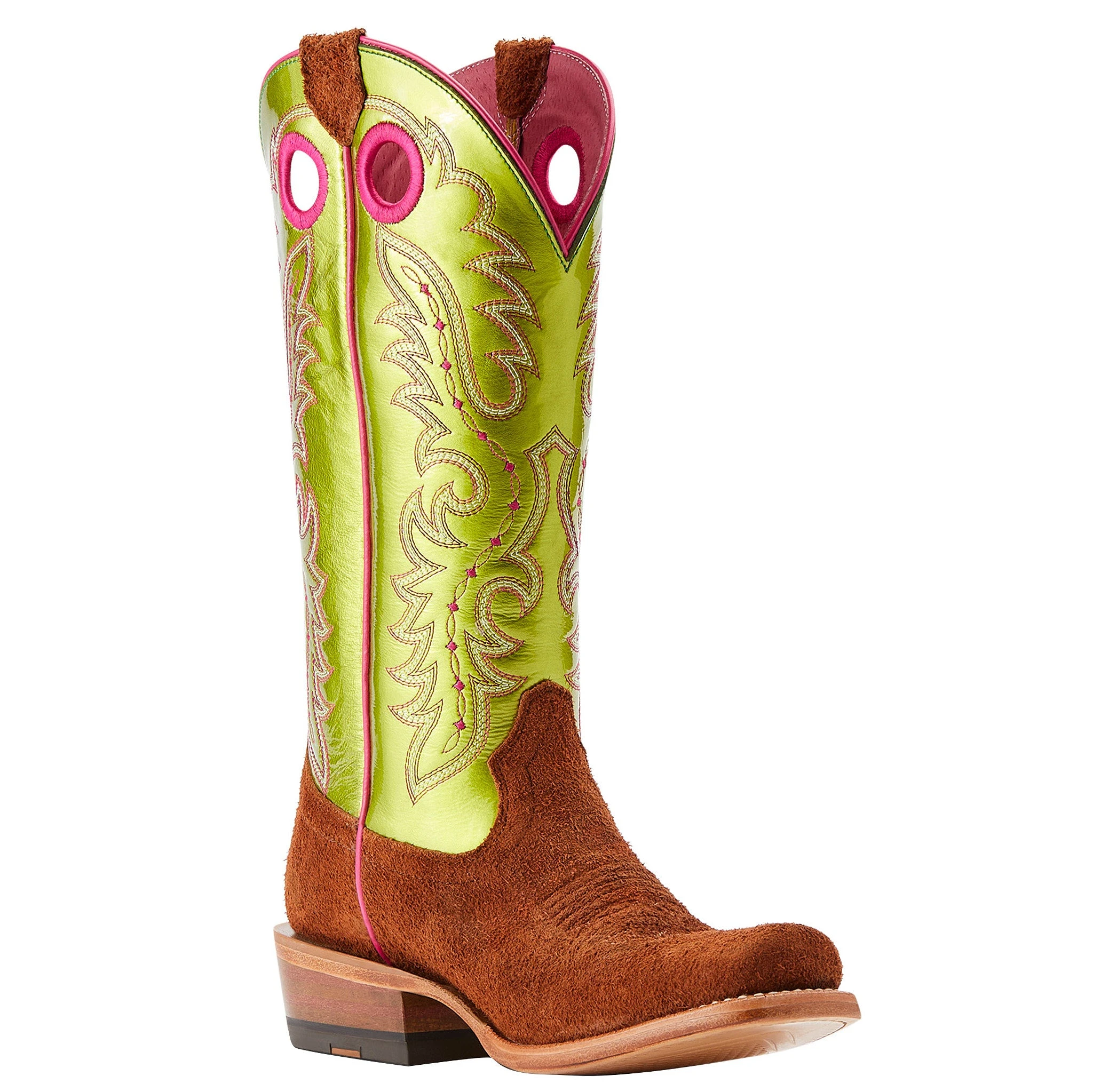 Designed in collaboration with 26x World Champion Cowboy Trevor Brazile, the Relentless collection of Futurity boots is a modern take on tradition for today’s cowgirl. With a cutter toe, roughout foot, and bright, bold shaft, this punchy pair is guaranteed to turn heads. Superior comfort and stability, plus an extra layer of heel-to-toe cushioning, keeps you on your toes.