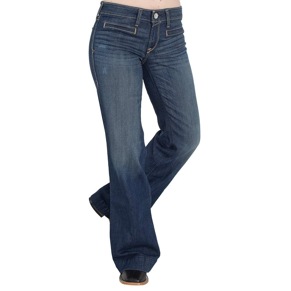 Get the denim you love in this Women’s Ariat Mid Rise Stretch Wide Leg Lucy Trouser Jeans, can be worn to the office or in the arena.