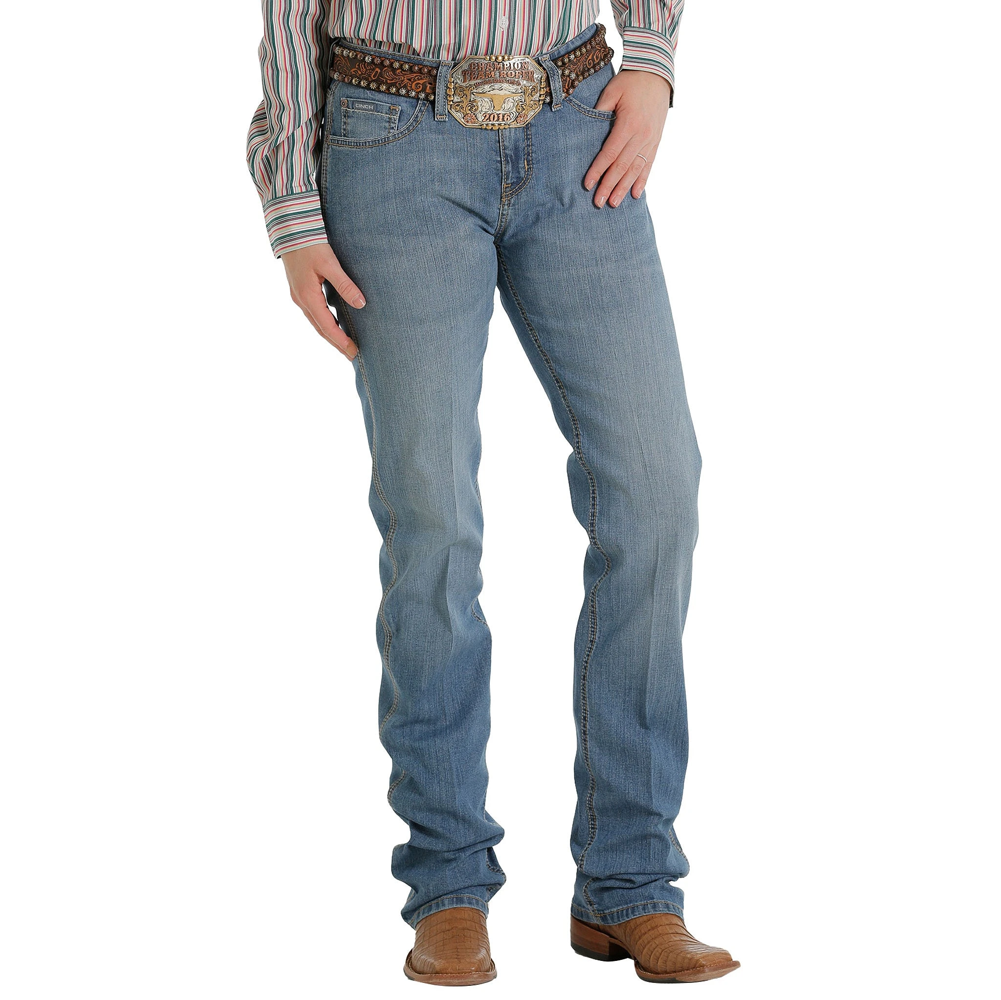 One of Cinch’s newer ladies’ fits, the slim-straight SHANNON boasts a higher rise and smaller 16 ¼” leg opening. Finishing details of hand sanding, whiskers, chevrons, tacking and knee starbursts complement the dark stonewash, along with triple needle yoke and outseam stitching.