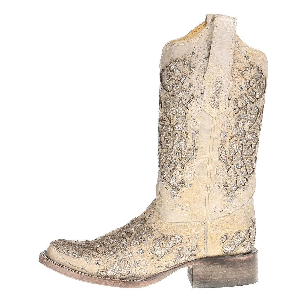 Either a night out with the girls, or for your wedding day our Corral White Glitter/Crystal boots will bring you the attention!