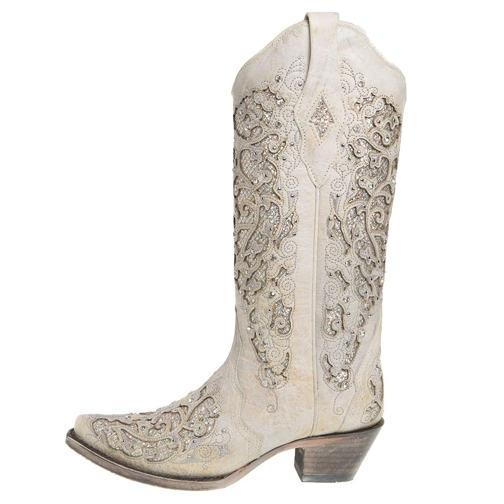 With these Corral Boot Company white glitter inlay boots, you are sure to be a showstopper! The quality and comfort for these boots are spot on.