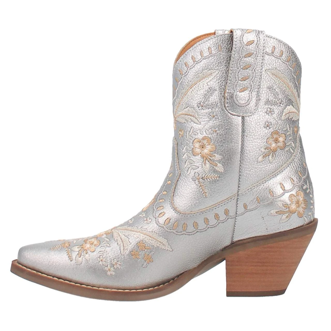 Dingo 1969 Women’s Primrose Silver Metallic Snip Toe 7 Bootie