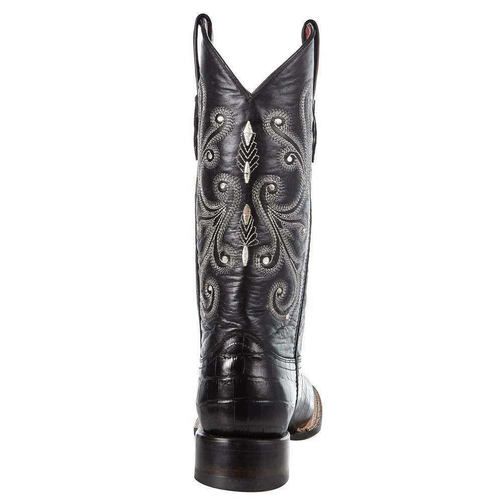 Stay true to your roots in these Women’s Ferrini Black Gator Belly Print Cowgirl Boots. These chic cowgirl boots have modern details with a southern feel. Made of high grade leather construction, this boot offers a black gator belly print cowhide vamp, 12″ black leather top, leather lining, and cushion insoles.