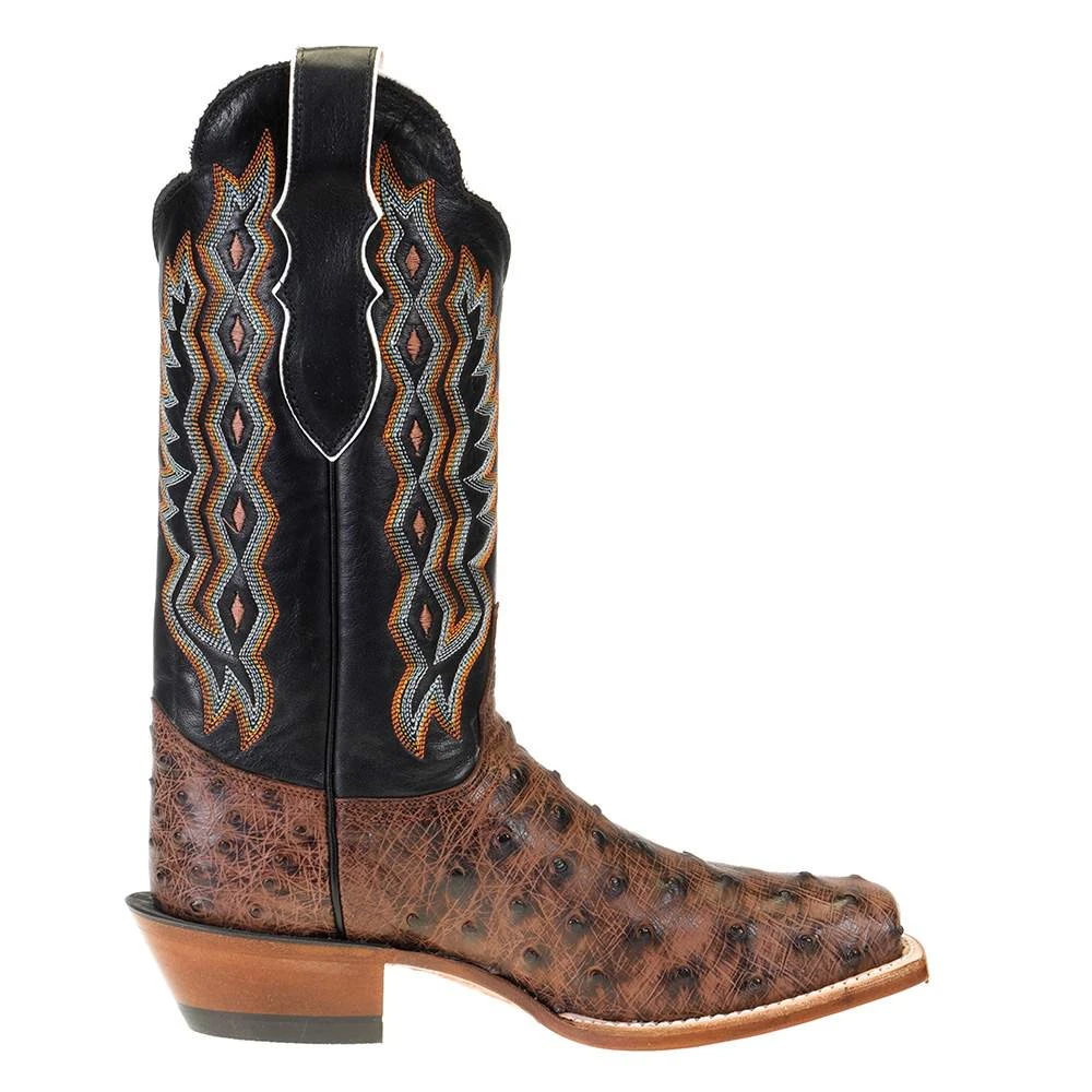Featuring a rich black leather upper with a distinctive stitch pattern and full quill ostrich foot, this boot is both lush and distinguished.This style is proudly Made in the USA with global parts.