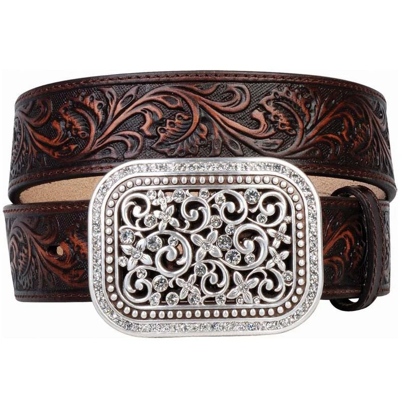 Mf Western Products Women’s Ariat® Rhinestone Filigree Brown Tooled Belt