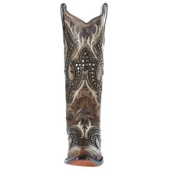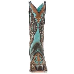 Corral Women’s Tan Embroidery-Turquoise Overlay 13 In Top Snip Toe Boot