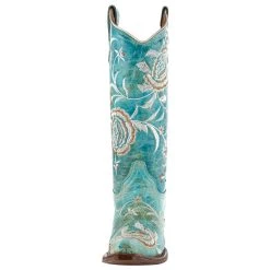 Corral Women’s Tan Embroidery-Turquoise Overlay 13 In Top Snip Toe Boot