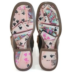 Tin Haul Footwear Ladies Burnished Tan Stitched Cactus Vamp Square Toe Cowgirl Boots