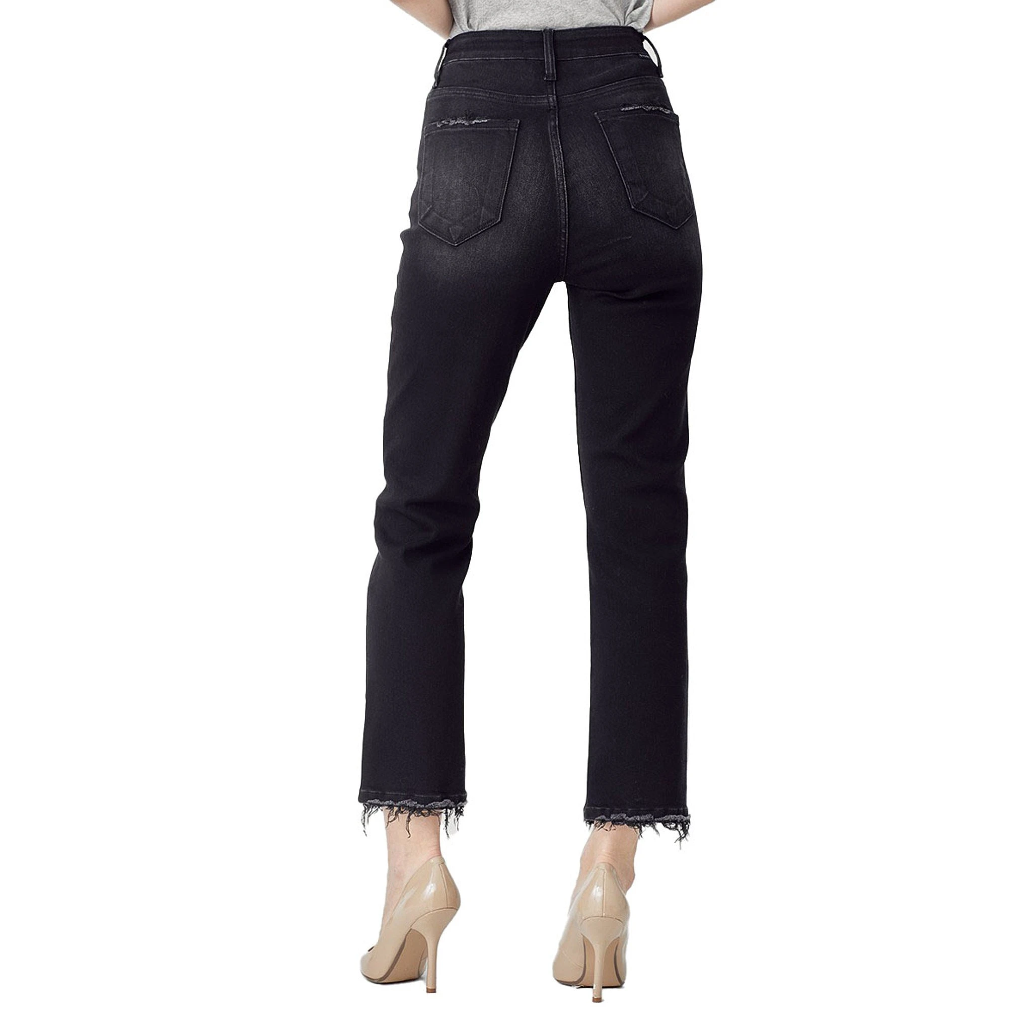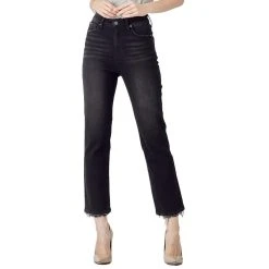 Risen Jeans are known for comfort and stretch and these cropped high rise straight leg jeans do not disappoint! With a solid black finish and classic fit you will be ready to fall into the winter.