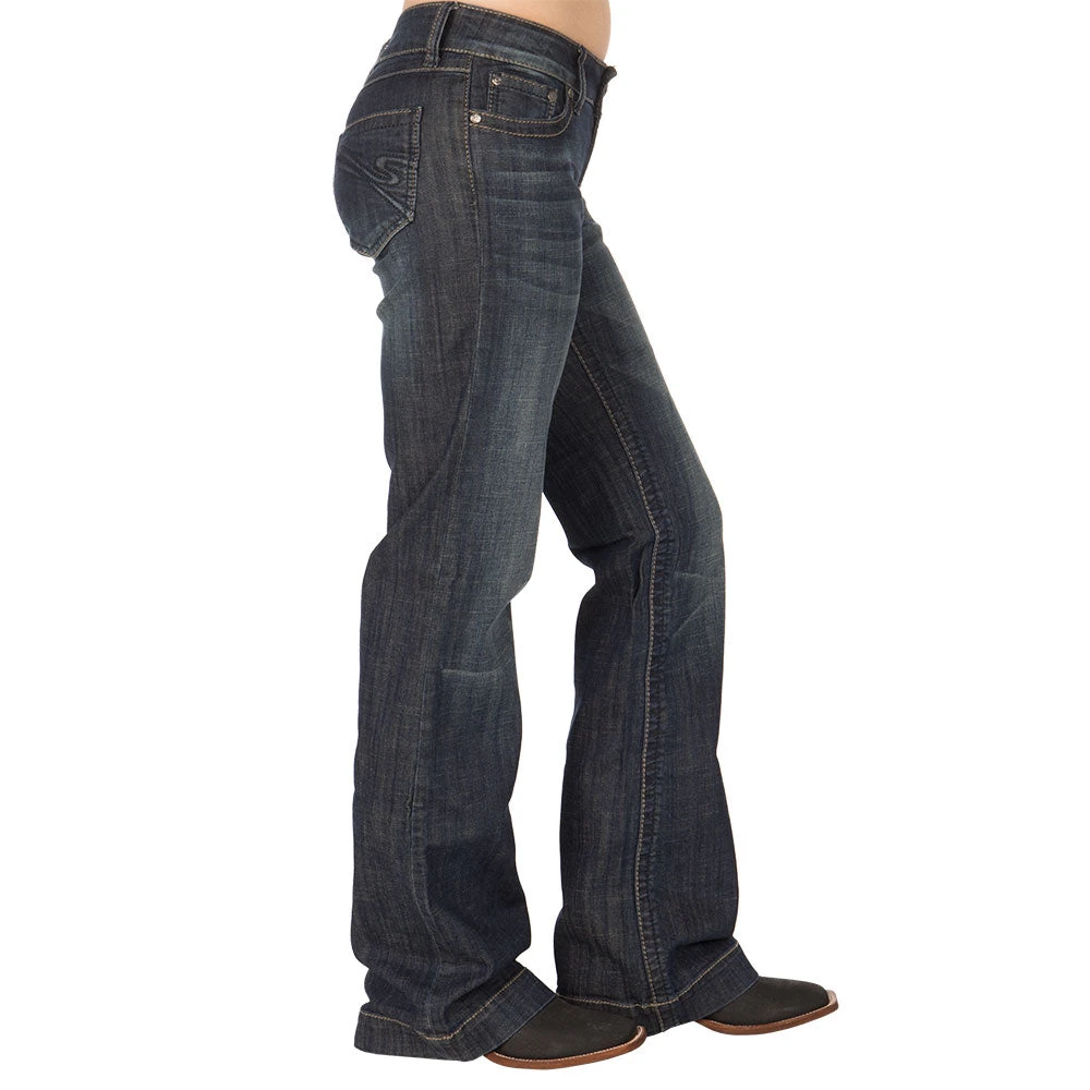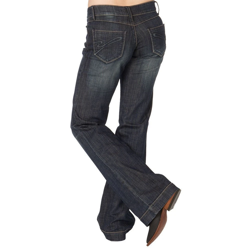 These Stetson trouser jeans are comfortable with the moderate fit through the thigh and flared leg. They go great with a pair of boots, heels or whatever you please. The dark wash allows you to use these as a dress pant or you can keep it casual!