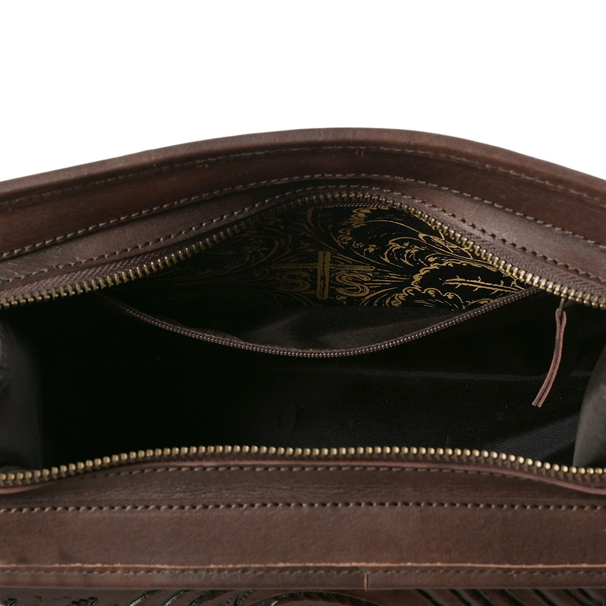 Travel kit full grain leather with tooled leather accents that only gets more beautiful with use.