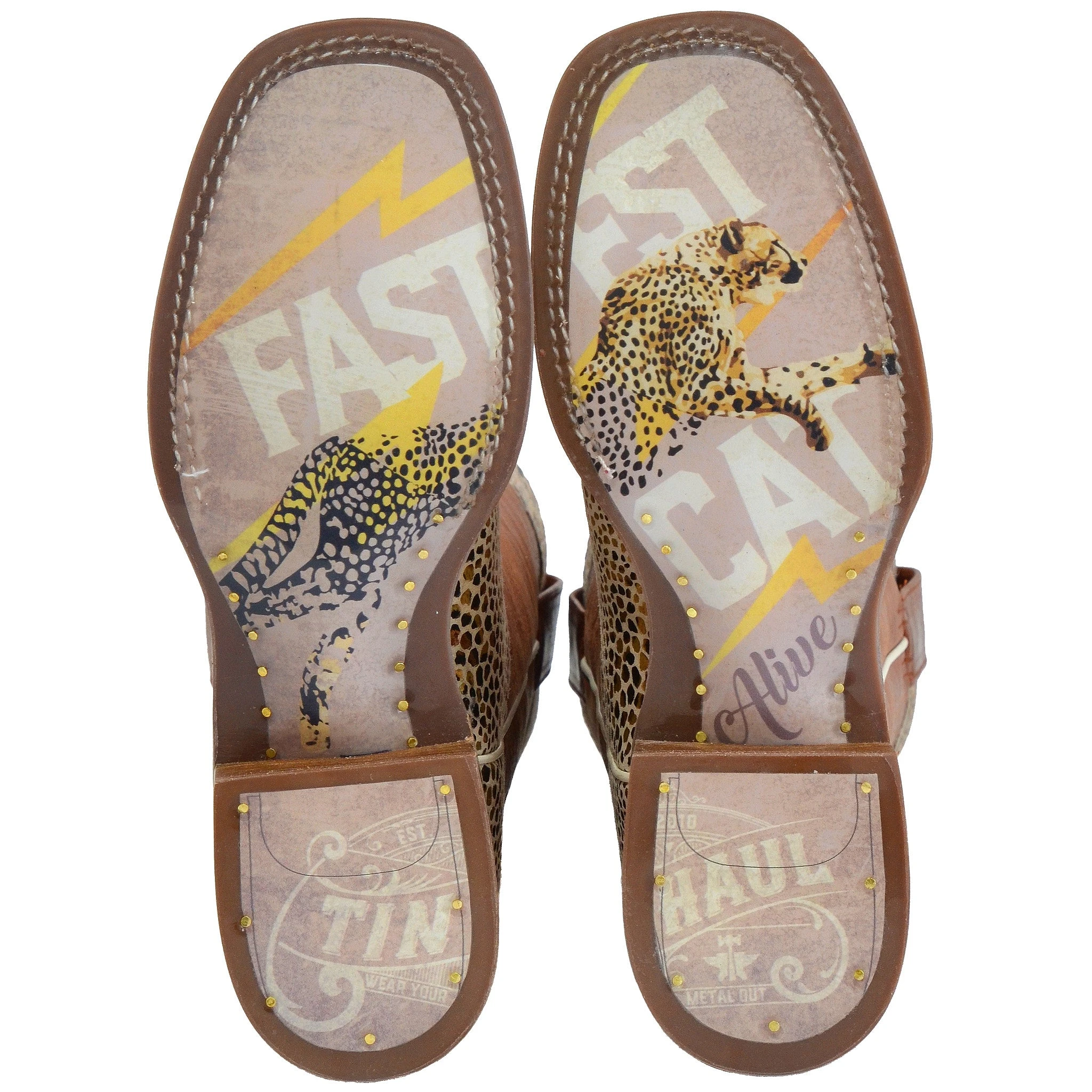 Comfort and style mixed with a bit of fun in these Golden Cheetah-Fastest Cat Alive themed boots from Tin Haul Footwear!