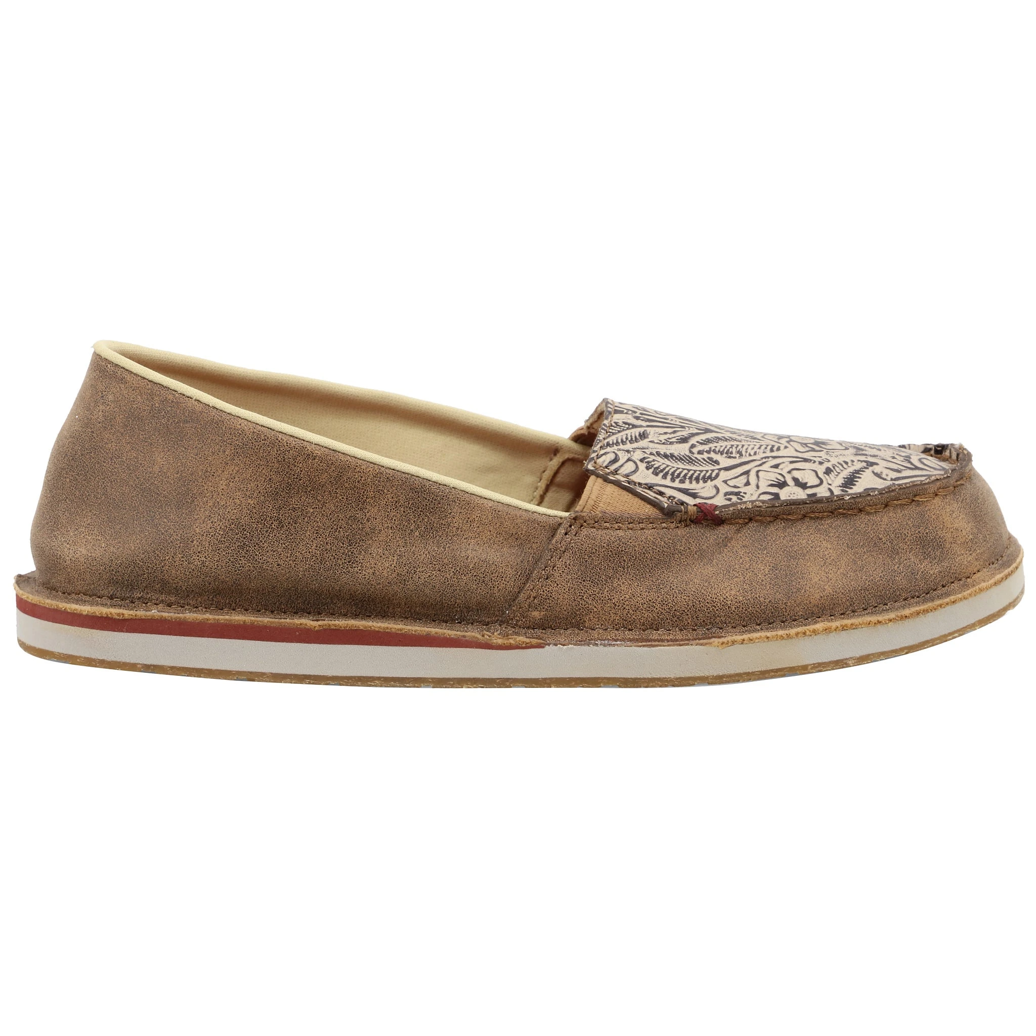 These Women’s Slippers bring relaxed styling that is perfect for lounging around. Handcrafted in full-grain leather with a tooled leather pattern vamp, the Twisted X Slippers showcase the durability for all day comfort inside, or while running quick errands outside. Featuring an ecoTWEED Lining, these Twisted X Women’s Slippers are reserved for those well-deserved, relaxing days without sacrificing the comfort you’ve grown to know and love.