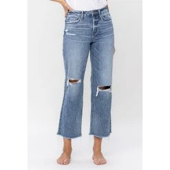 Flying Monkey Women’s High Rise 90’s Vintage Straight Jeans With Cuff Hem
